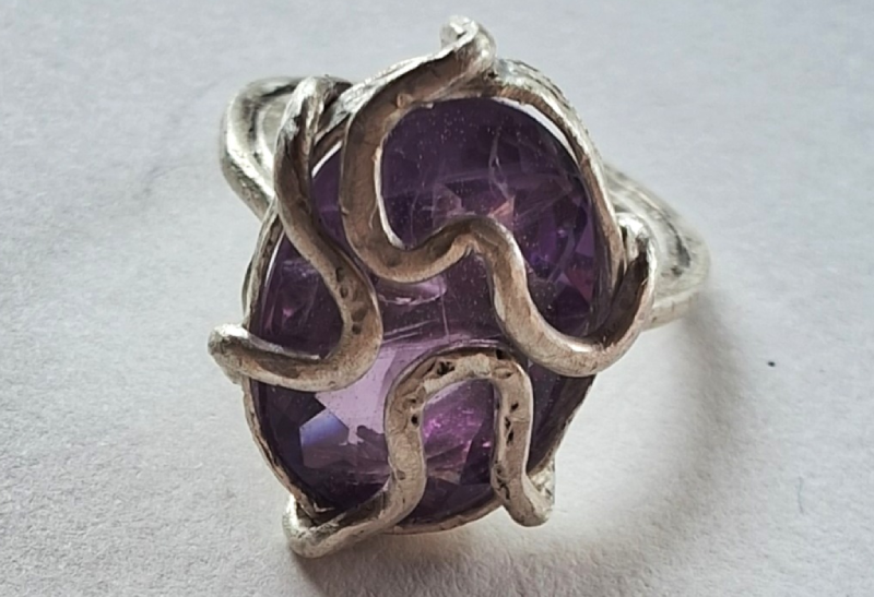 Anel em prata com pedra roxa